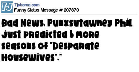 X says Bad News, Punxsutawney Phil just predicted 6 more seasons of "Desparate Housewives"."