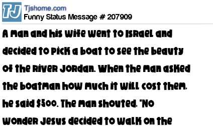X is A man and his wife went to Israel and decided to pick a boat to see the beauty of the river Jordan. When the man asked the boatman how much it will cost them, he said $500. The man shouted, "No wonder Jesus decided to walk on the sea."