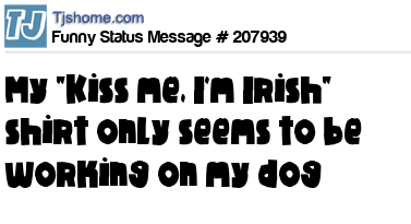 X says My "Kiss me, I'm Irish" shirt only seems to be working on my dog