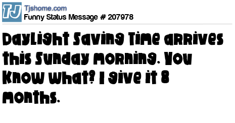 X says Daylight Saving Time arrives this Sunday morning. You Know what? I give it 8 months.