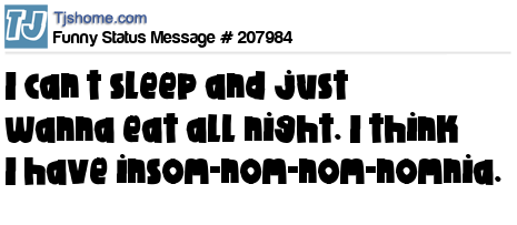 X says I can’t sleep and just wanna eat all night. I think I have insom-nom-nom-nomnia.