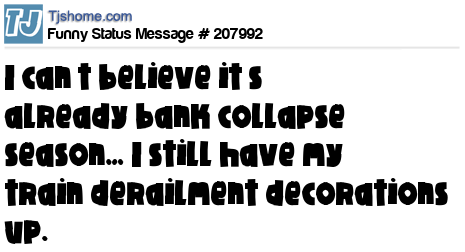 X says I can’t believe it’s already bank collapse season… I still have my train derailment decorations up.