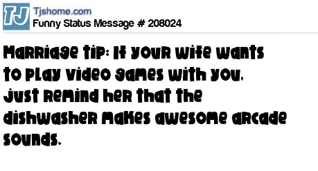 X is Marriage tip: If your wife wants to play video games with you, just remind her that the dishwasher makes awesome arcade sounds.
