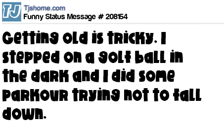 X says Getting old is tricky. I stepped on a golf ball in the dark and I did some parkour trying not to fall down.