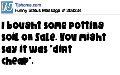 X says I bought some potting soil on Sale. You might say it was "dirt cheap".