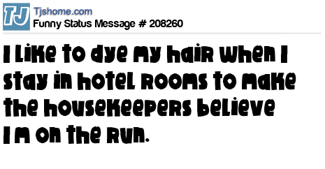 X says I like to dye my hair when I stay in hotel rooms to make the housekeepers believe I’m on the run.