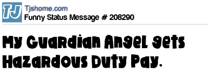 - # 163765 Thankfully, my Guardian Angel gets Hazardous Duty pay.