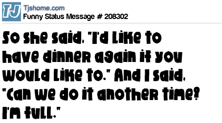 X says So she said, "I'd like to have dinner again if you would like to." And I said, "Can we do it another time? I'm full."