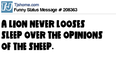 X says A LION NEVER LOOSES SLEEP OVER THE OPINIONS OF THE SHEEP.