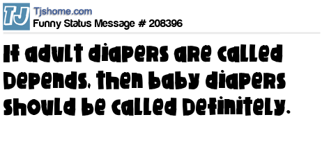 - # 110288 If adult diapers are called Depends, then baby diapers should be called Definitely