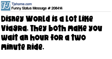 - # 185730 Viagra is like Disney land, the both make you wait a hour for a three minute ride.