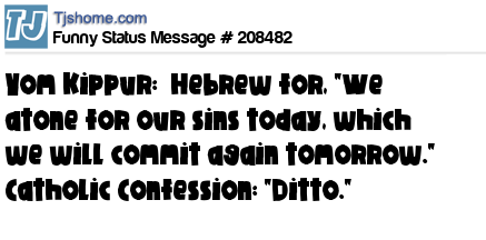 X says Yom Kippur: Hebrew for, "We atone for our sins today, which we will commit again tomorrow." Catholic Confession: "Ditto."