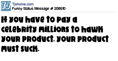 X If you have to pay a celebrity millions to hawk your product, your product must suck.