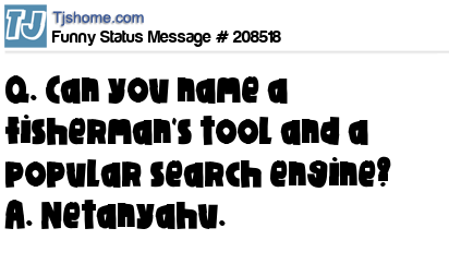 X says Q. Can you name a fisherman's tool and a popular search engine? A. Netanyahu.