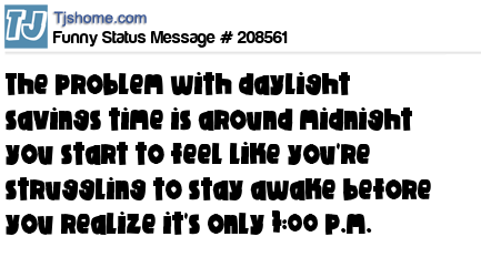 X is The problem with daylight savings time is around midnight you start to feel like you're struggling to stay awake before you realize it's only 7:00 p.m.