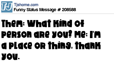 X says Them: What kind of person are you? Me: I'm a place or thing, thank you.