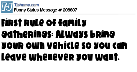 X is First rule of family gatherings: Always bring your own vehicle so you can leave whenever you want.