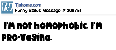 - # 208750 I'm not homophobic. I'm pro-pussy.