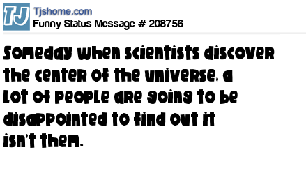 - # 38760 When they discover the center of the universe, some people will be very disappointed when they find out it's not them.