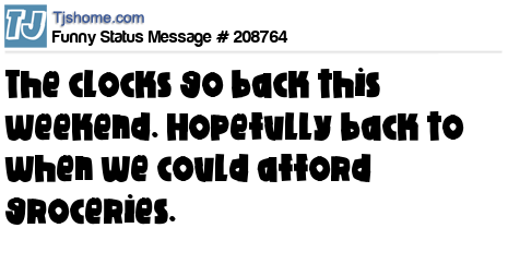 X is The clocks go back this weekend. Hopefully back to when we could afford groceries.