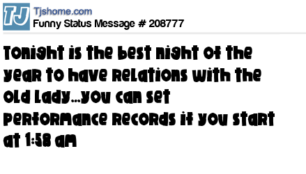 X is Tonight is the best night of the year to have relations with the old lady…you can set performance records if you start at 1:58 am🤪
