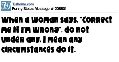 - # 152913 Relationship Tip for men: When a woman says, "Correct me if I'm wrong but...."Don't do it!! It's a trap!! DO NOT, I repeat, do not correct that woman!!!