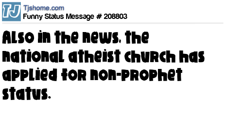X says Also in the news, the national atheist church has applied for non-prophet status.