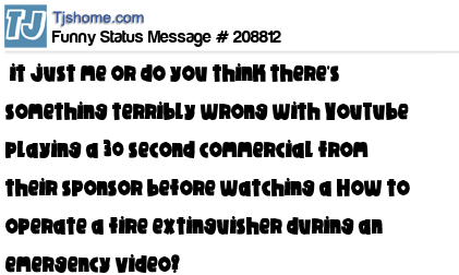 X is it just me or do you think there's something terribly wrong with YouTube playing a 30 second commercial from their sponsor before watching a How to operate a fire extinguisher during an emergency video?