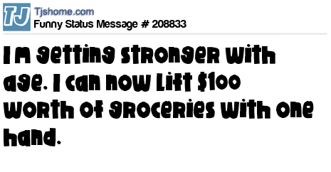 - # 209246 I’m getting stronger with age. I can now lift $75.00 worth of groceries with one hand.