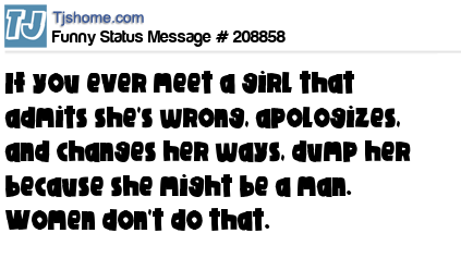 X is If you ever meet a girl that admits she's wrong, apologizes, and changes her ways, dump her because she might be a man. Women don't do that.