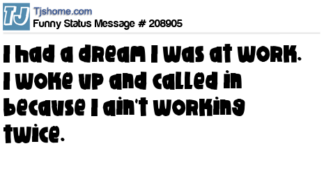 X is I had a dream I was at work. I woke up and called in because I ain't working twice.