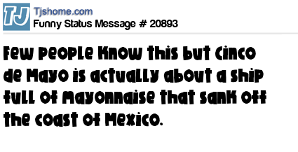 X Few people know this but Cinco de Mayo is actually about a ship full of mayonnaise that sank off the coast of Mexico.