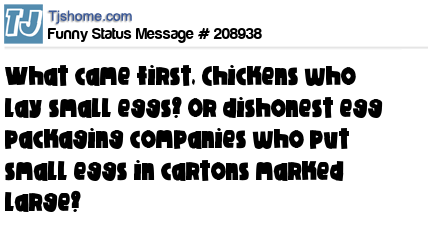 X is What came first, Chickens who lay small eggs? Or dishonest egg packaging companies who put small eggs in cartons marked large?