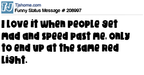 X is I love it when people get mad and speed past me, only to end up at the same red light.