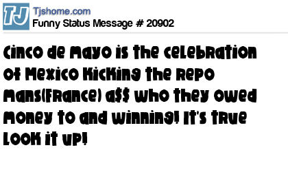 - # 117112 cinco de mayo is not Mexico's Independence Day! retard!
