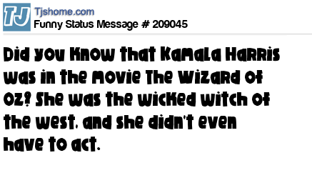 X is Did you know that Kamala Harris was in the movie The Wizard of Oz? She was the wicked witch of the west, and she didn't even have to act.