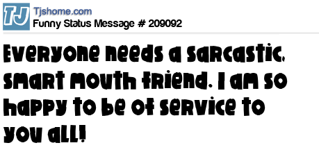 X is Everyone needs a sarcastic, smart mouth friend. I am so happy to be of service to you all!
