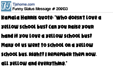 X is Kamala Harris quote: "Who doesn't love a yellow school bus? Can you raise your hand if you love a yellow school bus? Many of us went to school on a yellow school bus, right? I remember them now, all yellow and everything."