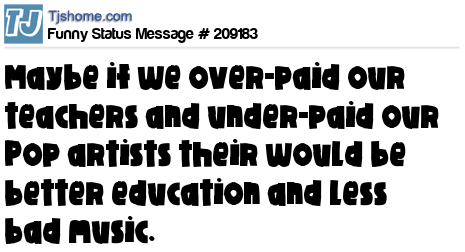 - # 85561 Maybe if we over-paid our teachers and under-paid our Pop artists there would better education and less bad music.