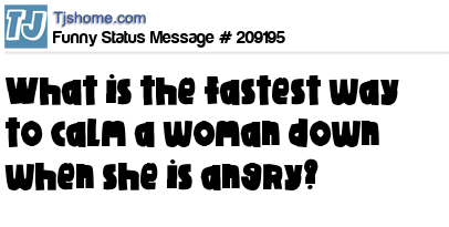 - # 209064 Guys, when a woman is angry, just tell her she is overreacting. She'll realize you're right and then she'll calm right down.