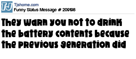 - # 209194 If you think you are smarter than the previous generation...50 years ago the owners manual of a car showed you how to adjust the valves. Today it warns you not to drink the contents of the battery.