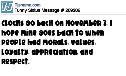 X is Clocks go back on November 3. I hope mine goes back to when people had morals, values, loyalty, appreciation, and respect.