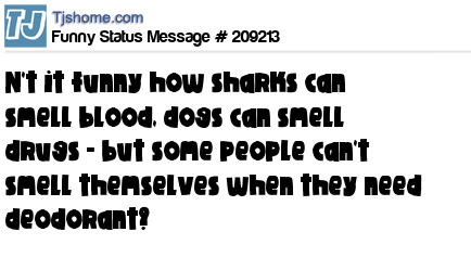 X is n't it funny how sharks can smell blood, dogs can smell drugs - but some people can't smell themselves when they need deodorant?