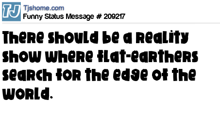 - # 188796 We need a reality show where Flat-Earthers attempt to find the edge of the planet.