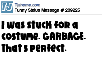 X says I was stuck for a costume. GARBAGE. That’s perfect.