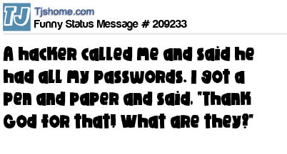 X is A hacker called me and said he had all my passwords. I got a pen and paper and said, "Thank God for that! What are they?"