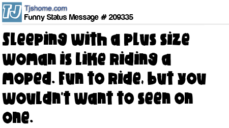X says Sleeping with a plus size woman is like riding a moped. Fun to ride, but you wouldn't want to seen on one.
