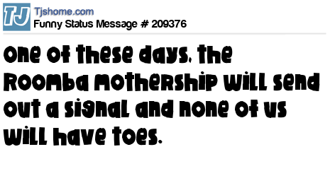 X says One of these days, the Roomba mothership will send out a signal and none of us will have toes.
