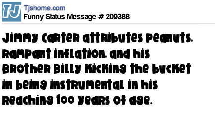 X says Jimmy Carter attributes peanuts, rampant inflation, and his Brother Billy kicking the bucket in being instrumental in his reaching 100 years of age.