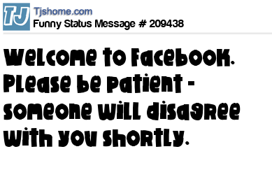 X is Welcome to Facebook. Please be patient - someone will disagree with you shortly.